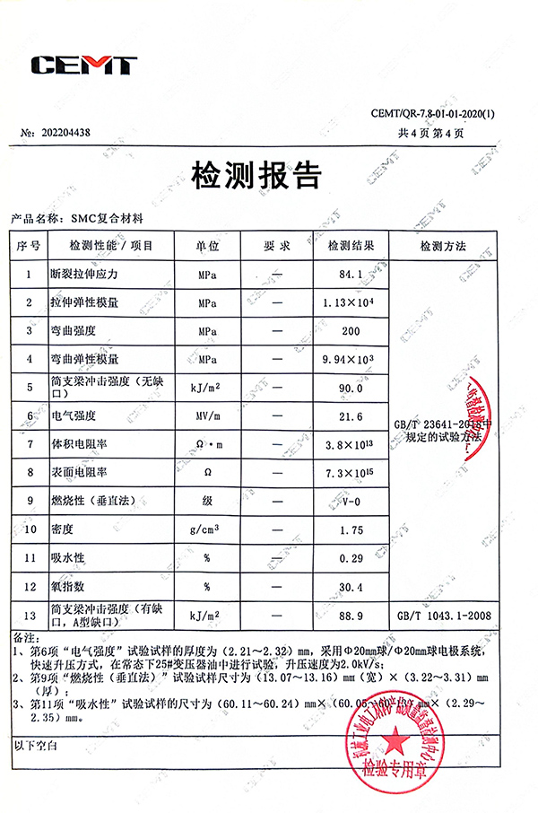 電氣SMC復(fù)合材料檢測(cè)報(bào)告