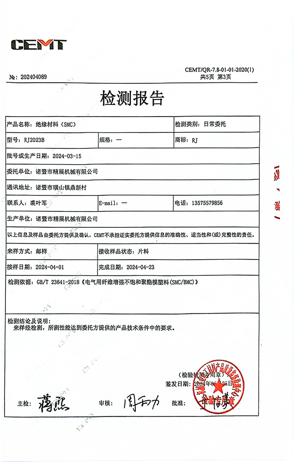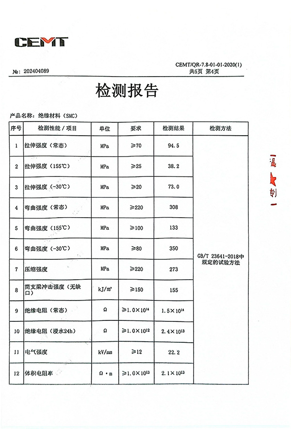 • 絕緣材料(SMC)檢測(cè)報(bào)告