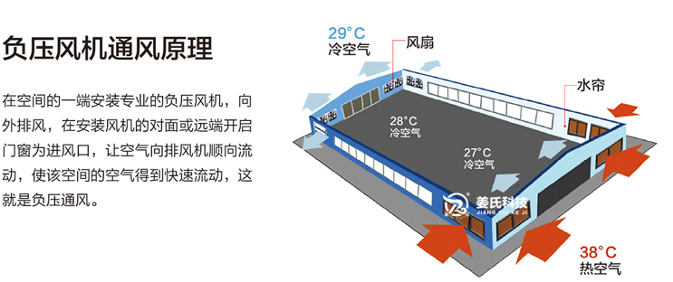 負(fù)壓風(fēng)機(jī),又稱工業(yè)排風(fēng)扇,是利用空氣對流、負(fù)壓換氣的降溫原理,是一種由安裝地點(diǎn)的對向---大門或窗戶自然吸入新鮮空氣,將室內(nèi)悶熱氣體迅速強(qiáng)制排出室外,降溫?fù)Q氣效果可達(dá)90%-97%。